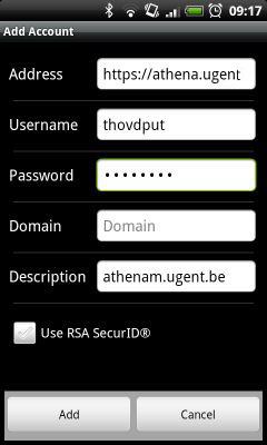 For Android smartphones you have to install the 'Citrix Receiver Application'. You find it for free on Android Market. Start the application and add the settings.