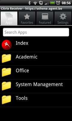 To use Athena, start the Citrix Receiver Application. Use the setup you created for athenam.ugent.be.