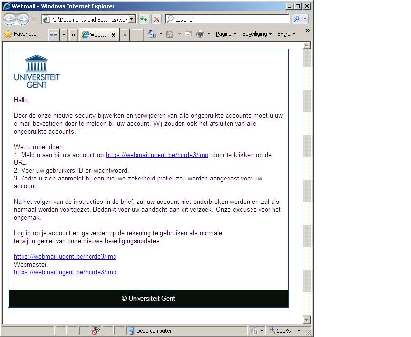 De UGent zal nooit uw accountgegevens opvragen via e-mail!
