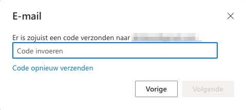 Vul de e-mailverificatiecode in (die je ondertussen hebt ontvangen op dit e-mailadres).